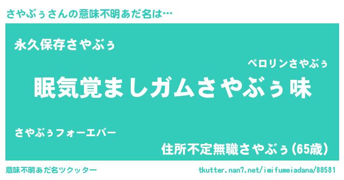 | 胡散臭い通販商品みたいなあだ名 | 『100人中100人が認めたマグネット磁石…その名も「さやぶぅ」』 |