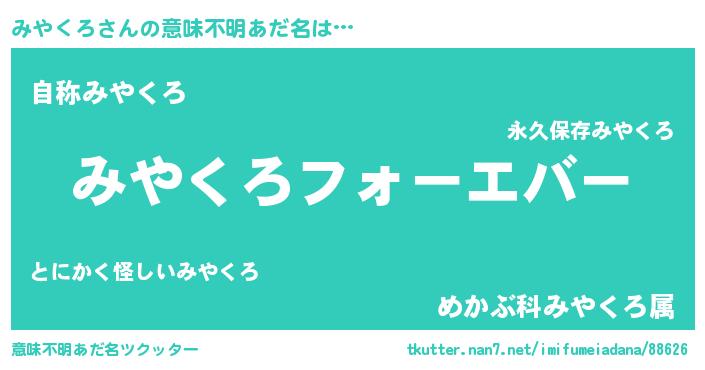 | 欧米人風あだ名 | 『みやくろクリステル』 |