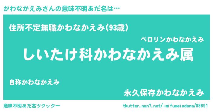 | ヘコむあだ名 | 『かわなかえみ(爆)』『かわっふぃ~』 |