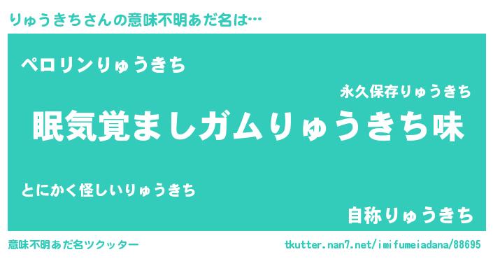 | 男性向けラノベタイトル風あだ名 | 『りゅうきちに滅ぼされるだけの簡単なお仕事です』 |