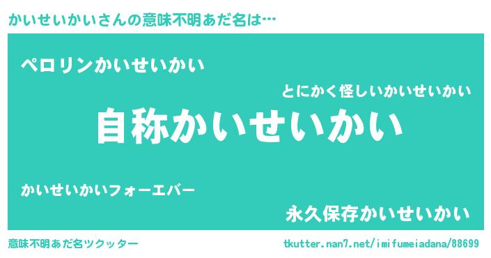 | ヒーロー風カッコイイあだ名 | 『究極戦士カイセイカイ』『幻影騎士カイ』 |