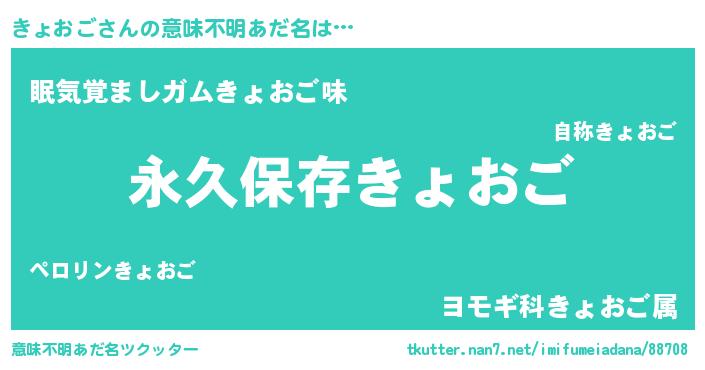 | ヒーロー風カッコイイあだ名 | 『ネオキョオゴ』『愛の使者きょおご』 |