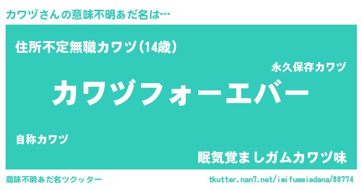 | ファンタジー風あだ名 | 『エターナルカワヅー』『カークカワラー』 |