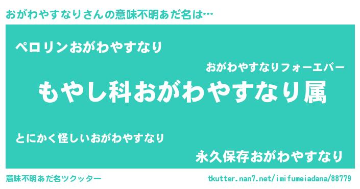 | 男性向けラノベタイトル風あだ名 | 『転生したらおがわやすなりだった件』 |