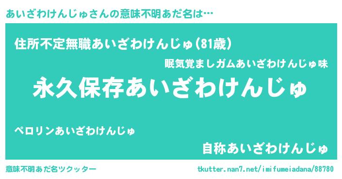 | 胡散臭い通販商品みたいなあだ名 | 『前代未聞の水素水…その名も「あいざわけんじゅ」』 |