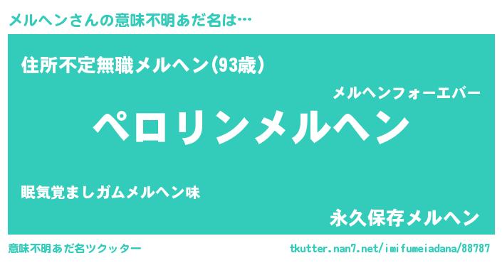 | ヘコむあだ名 | 『メルもー』『メルヘン(遠い目)』 |