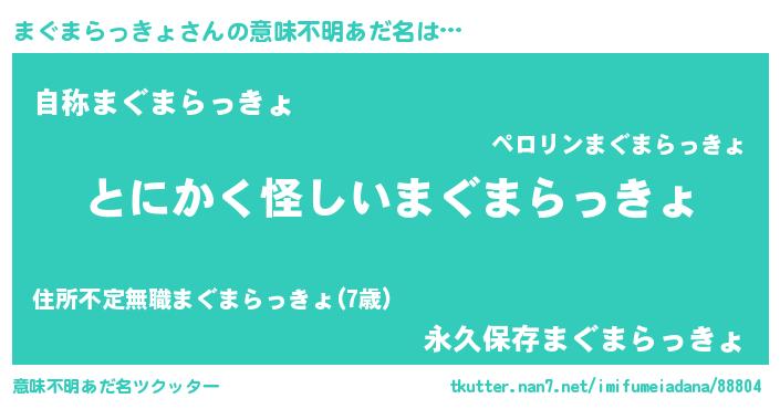 | 女子向けラノベタイトル風あだ名 | 『まぐまらっきょの卵を拾いまして』 |