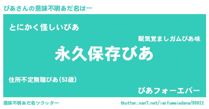 | ヘコむあだ名 | 『びあ(笑)』『びあっ子』『なまこ酢』 |