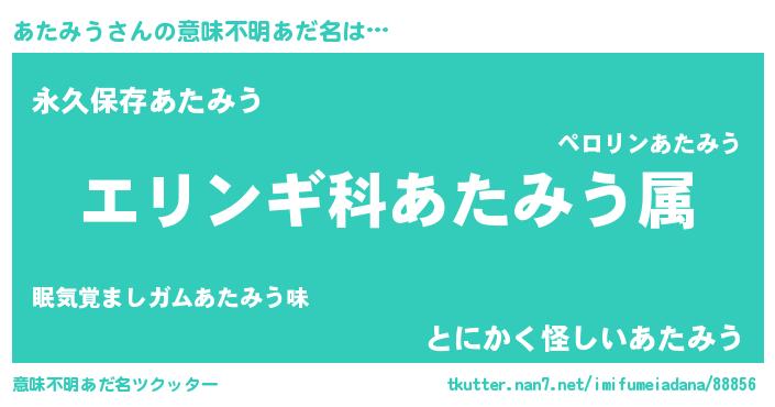 | ヘコむあだ名 | 『あたみう(笑)』『あたを』 |