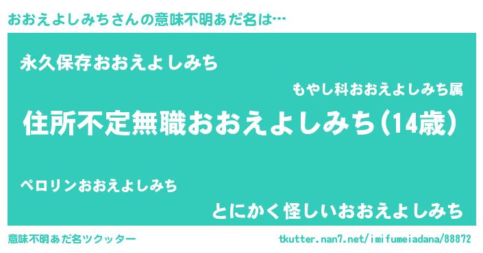 | ヒーロー風カッコイイあだ名 | 『仮面オオダー』『ネオオオエヨシミチ』 |
