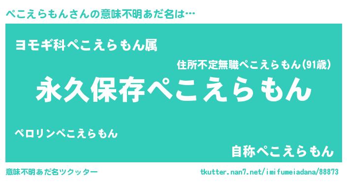 | 胡散臭い通販商品みたいなあだ名 | 『絶対に幸福をもたらす水素水…その名も「ぺこえらもん」』 |
