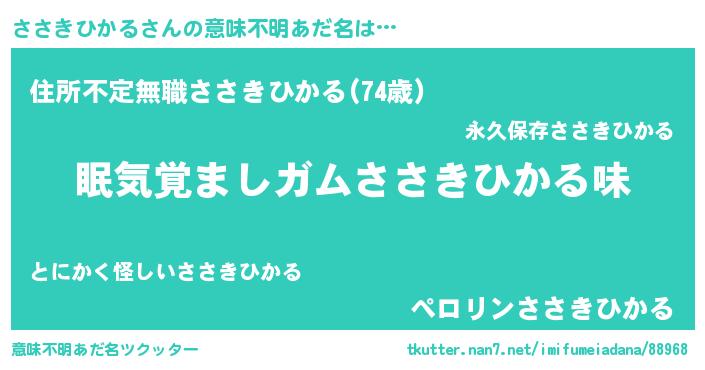 | ヘコむあだ名 | 『ささにゅー』『ささきひかる(笑)』 |
