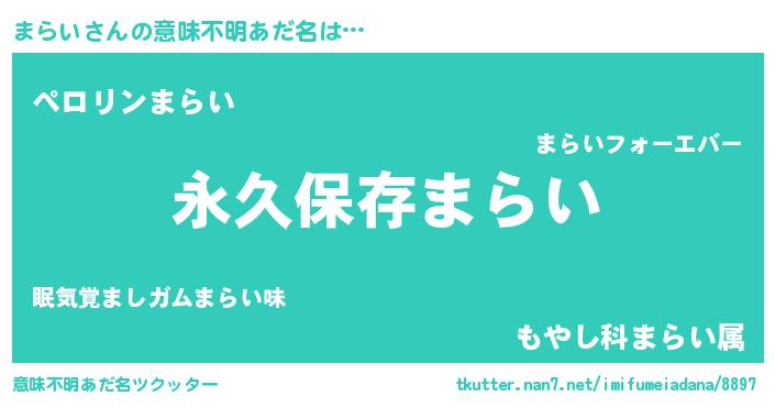 | ヘコむあだ名 | 『まらい(爆)』『まらにー』『豆乳』 |