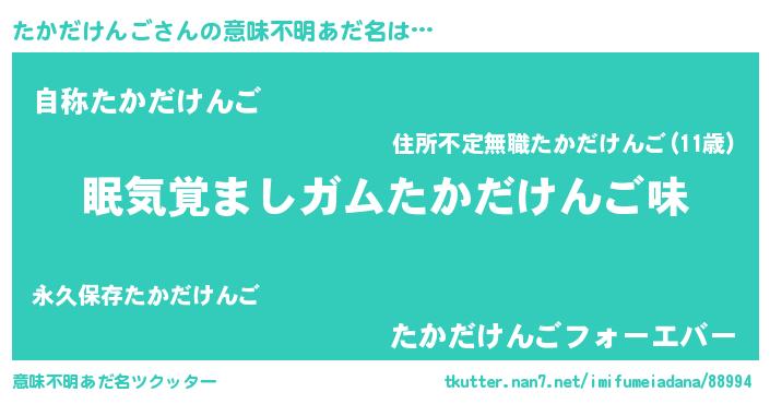 | 男性向けラノベタイトル風あだ名 | 『ノーゲーム・ノータカダケンゴ』 |