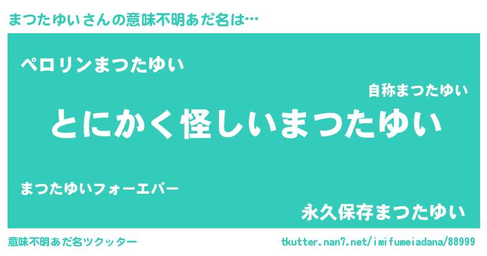 | 胡散臭い通販商品みたいなあだ名 | 『全米が絶賛したサプリメント…その名も「まつたゆい」』 |