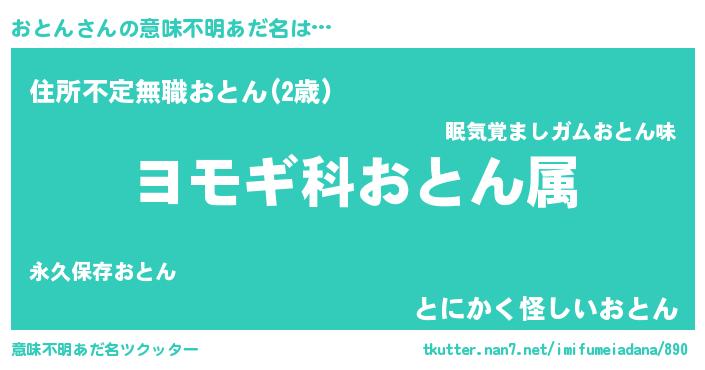 | 男性向けラノベタイトル風あだ名 | 『おとん~年齢イコール彼女いない歴の魔法使い~』 |