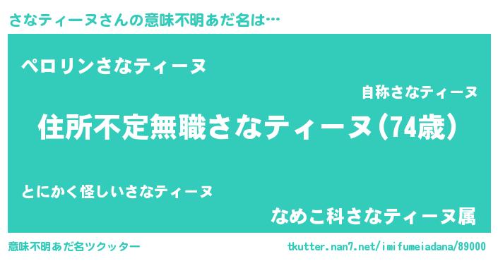 | 女子向けラノベタイトル風あだ名 | 『さなティーヌが死なない童話 林檎のさなティーヌの診療簿』 |