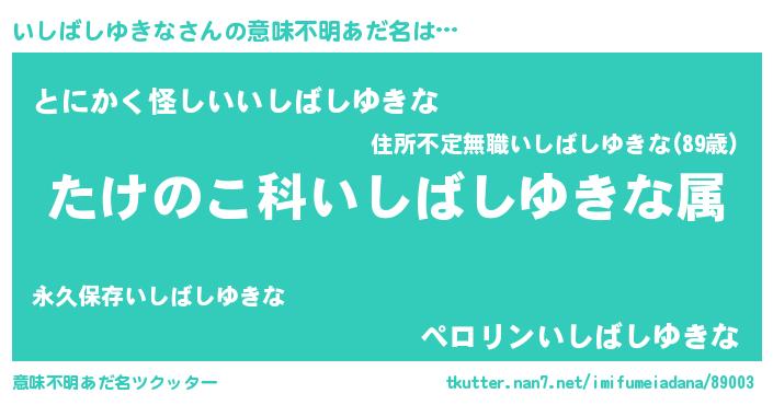 | 男性向けラノベタイトル風あだ名 | 『転生したらいしばしゆきなだった件』 |