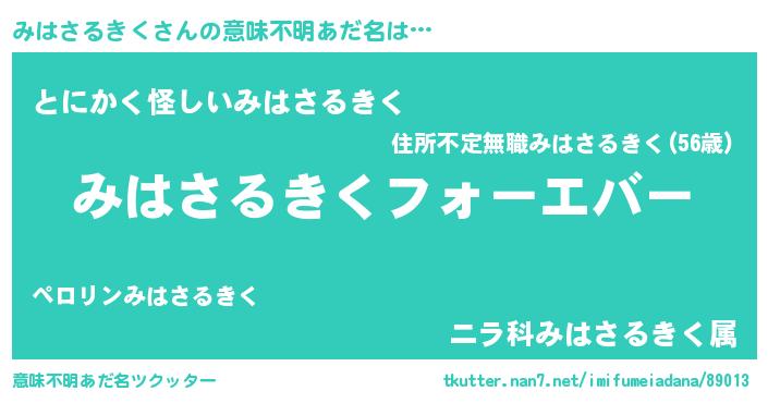| ポケモン風あだ名 | 『ミハサダネ』『ヒミハサルキク』 |