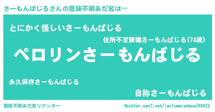 | 胡散臭い通販商品みたいなあだ名 | 『必ず成功する霊験あらたかなお札…その名も「さーもんばじる」』 |
