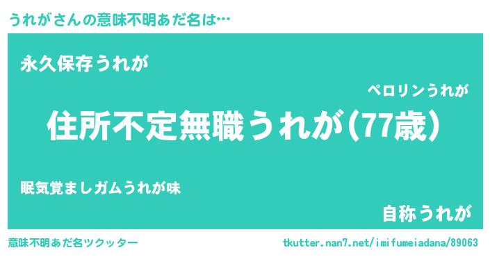 | 男性向けラノベタイトル風あだ名 | 『この素晴らしい世界にうれがを!』 |