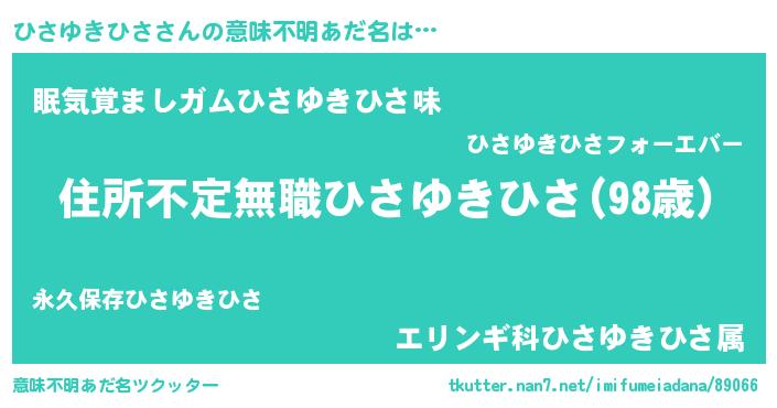 | 男性向けラノベタイトル風あだ名 | 『魔弾の王とひさゆきひさ』 |
