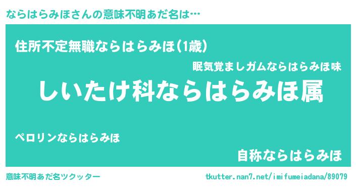 | ヘコむあだ名 | 『ならっふぃ~』『ならはらみほ(小並感)』 |