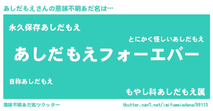 | 欧米人風あだ名 | 『あしだもえ・ステッグマイヤー』 |