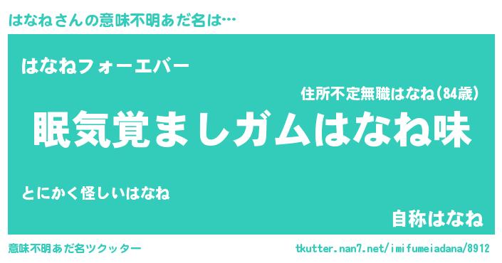 | 女子向けラノベタイトル風あだ名 | 『死神はなねの再婚』『はなねの婚約者』 |