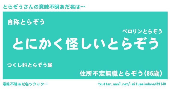 | 欧米人風あだ名 | 『ウサインとらぞう』『マイケルとらぞう』 |