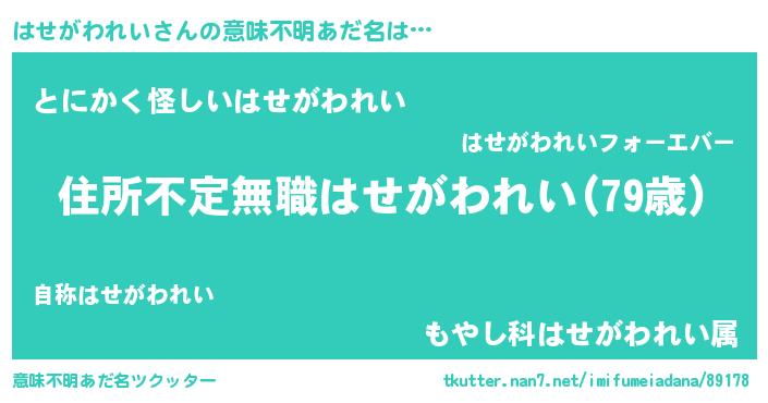 | 伝説のあだ名 | 『解き放たれた遊び人はせがわれい』 |