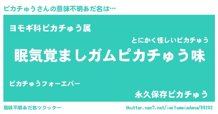| ヒーロー風カッコイイあだ名 | 『正義の使者ピカチゅう』『暗黒騎士ピカ』 |