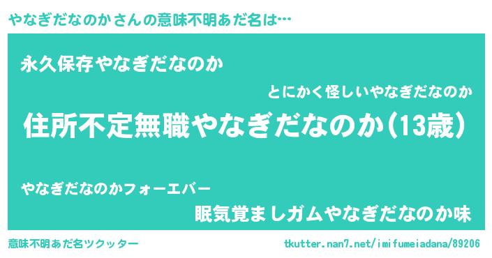 | 男性向けラノベタイトル風あだ名 | 『この素晴らしい世界にやなぎだなのかを!』 |