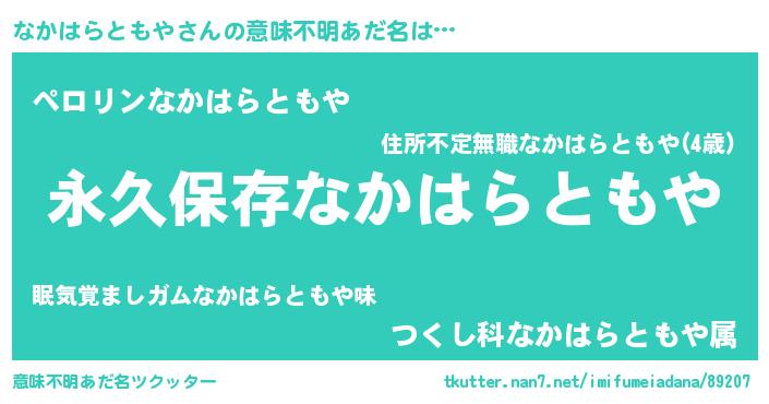 | ヘコむあだ名 | 『なかはらともや(笑)』『なかもー』 |