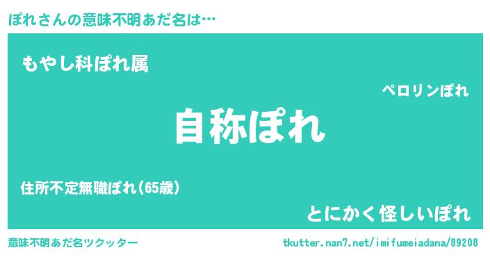 | 男性向けラノベタイトル風あだ名 | 『Re:ぽれから始める異世界生活』 |