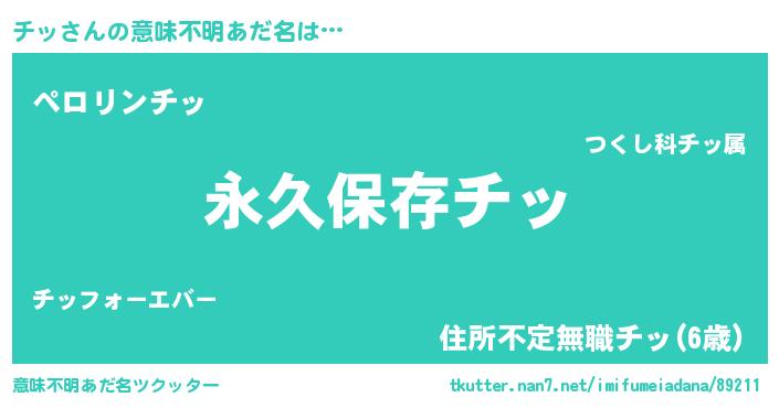 | 男性向けラノベタイトル風あだ名 | 『チッという概念が存在しない退屈な世界 』 |