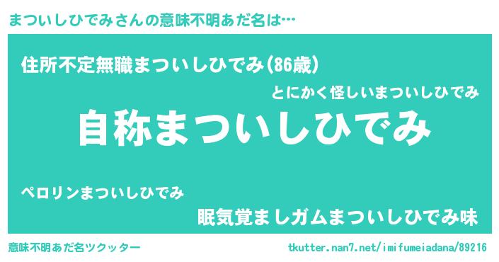 | 肩書あだ名 | 『まついしひでみ総統』 |