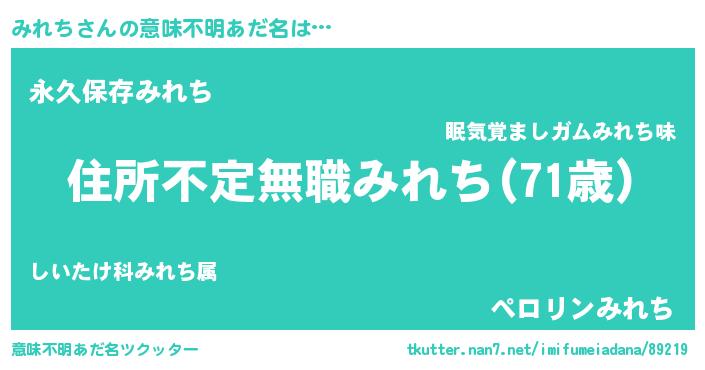 | ヘコむあだ名 | 『みれち(苦笑)』『みれっふぃ~』 |