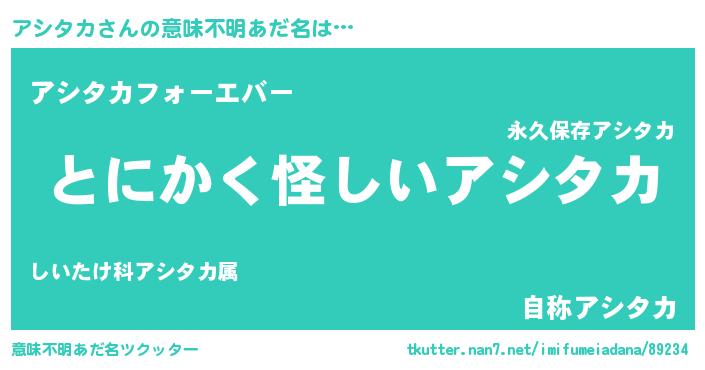 | ヒーロー風カッコイイあだ名 | 『幻影騎士アシ』『ウルトラアシタカマン』 |