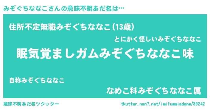 | 胡散臭い通販商品みたいなあだ名 | 『お金では代えられない隕石のかけら…その名も「みぞぐちななこ」』 |