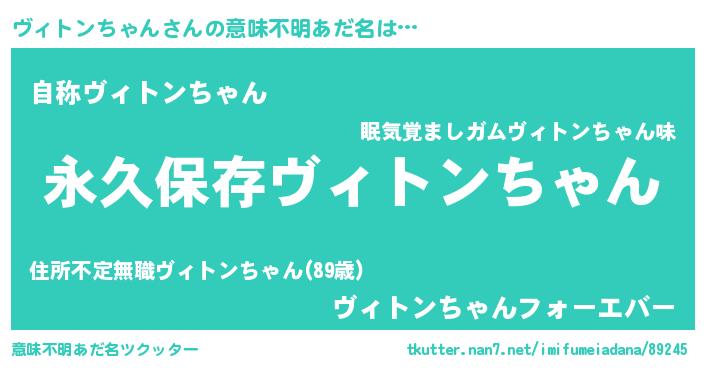 | 胡散臭い通販商品みたいなあだ名 | 『来世でも幸せになれる健康食品…その名も「ヴィトンちゃん」』 |