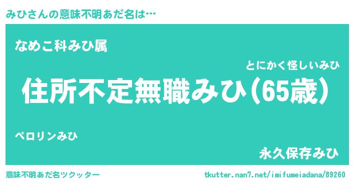 | ヘコむあだ名 | 『みひ(爆)』『みひっ子』『みひにー』 |