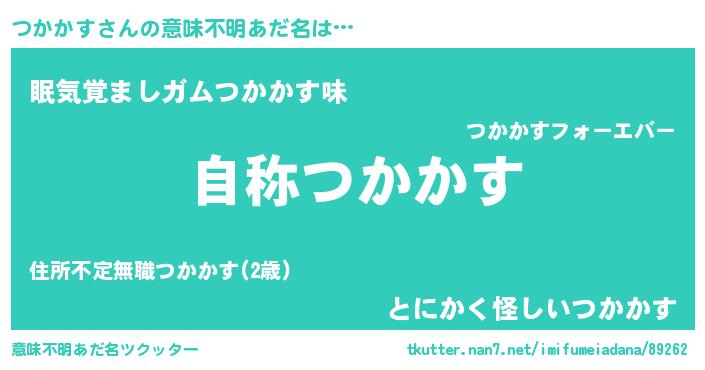 | 男性向けラノベタイトル風あだ名 | 『Re:つかかすから始める異世界生活』 |