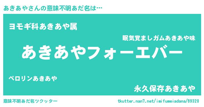 | ファンタジー風あだ名 | 『エターナルアキアヤー』『クインアット』 |