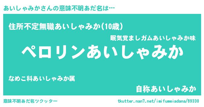 | 欧米人風あだ名 | 『マイケルあいしゃみか』 |