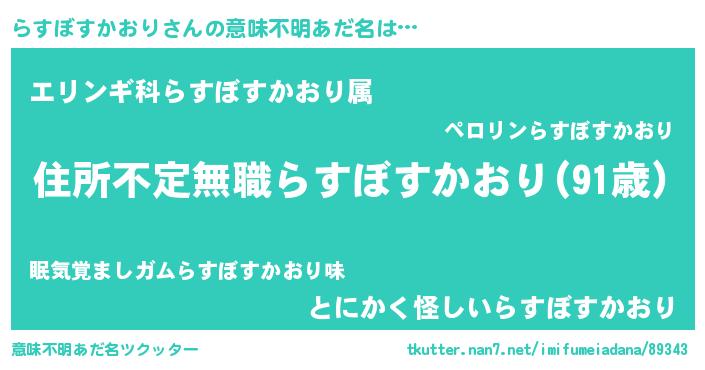 | 男性向けラノベタイトル風あだ名 | 『この素晴らしい世界にらすぼすかおりを!』 |