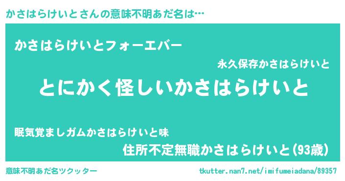 | 欧米人風あだ名 | 『アンジェラ・かさはらけいと』 |