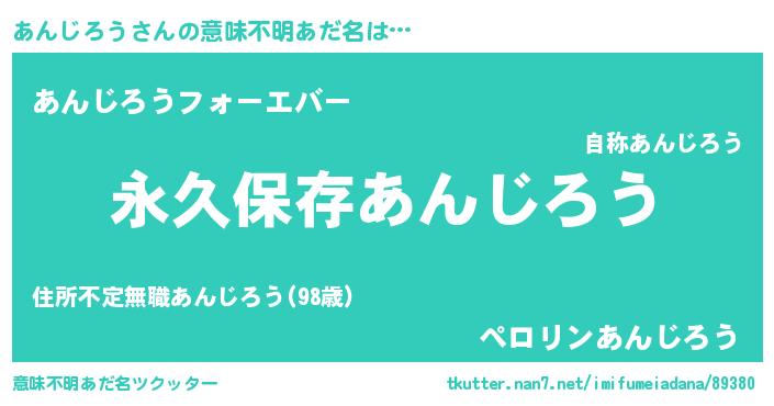 | 男性向けラノベタイトル風あだ名 | 『あんじろうという概念が存在しない退屈な世界 』 |