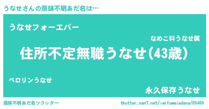 | 男性向けラノベタイトル風あだ名 | 『この素晴らしい世界にうなせを!』 |