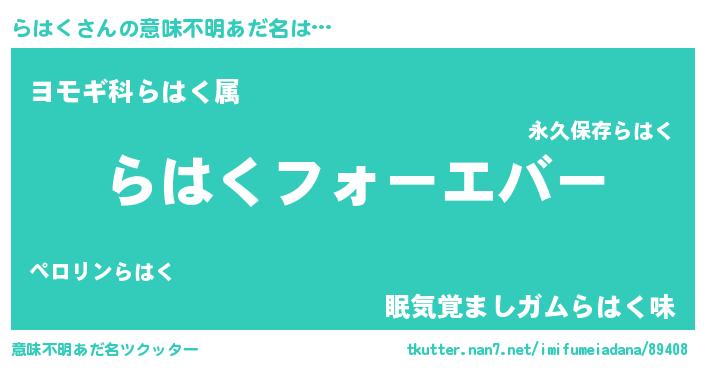 | ヒーロー風カッコイイあだ名 | 『ウルトラらはくマン』『ネオラハク』 |